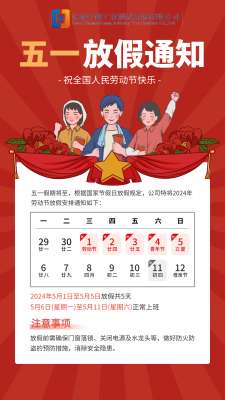 根據(jù)國家法定節(jié)假日安排及公司實(shí)際情況,現(xiàn)將2023年五一勞動(dòng)節(jié)放假事宜通知如下:一、放假時(shí)間本次放假時(shí)間為2023年4月29日(星期六)至5月3日(星期三)放假調(diào)休,共5天。4月23日(星期日)、5月6日(星期六)上班。請各位員工提前做好工作安排,確保放假期間各項(xiàng)工作能夠順利交接。